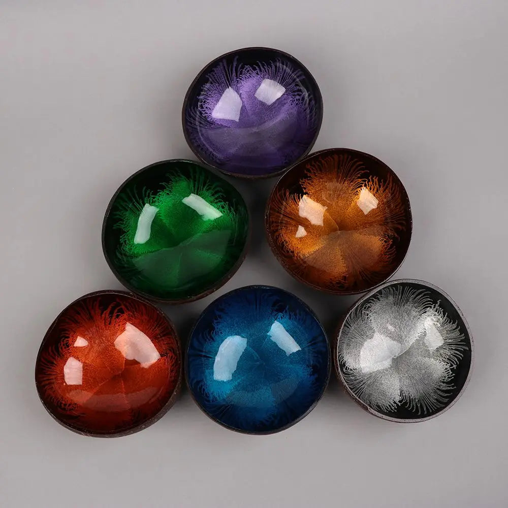 It can store candy, melon seeds, dried fruits, etc. completely. It can also be utilized to place your accessories and save a lot of space for your table. The coconut shell bowl is processed with paint spraying and enjoys unique and beautiful pattern that could beautify and decorate the house.