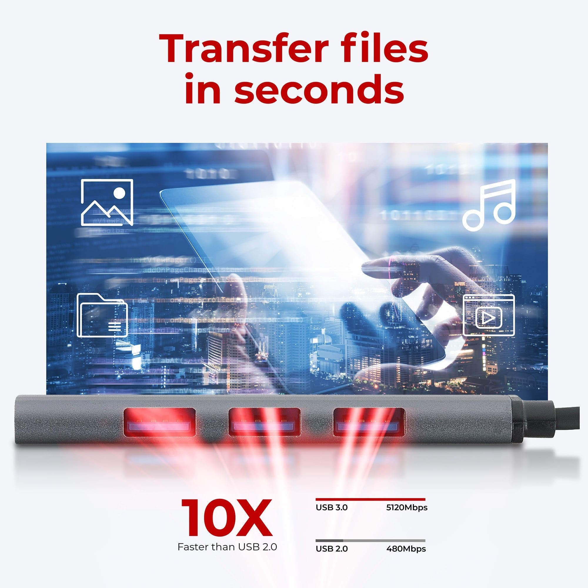 The versatile multiport hub is compact and lightweight, so it's easy to tuck into your laptop bag. It consolidates multiple ports into a single adapter, which means you don’t need to bring along multiple single-function adapters.