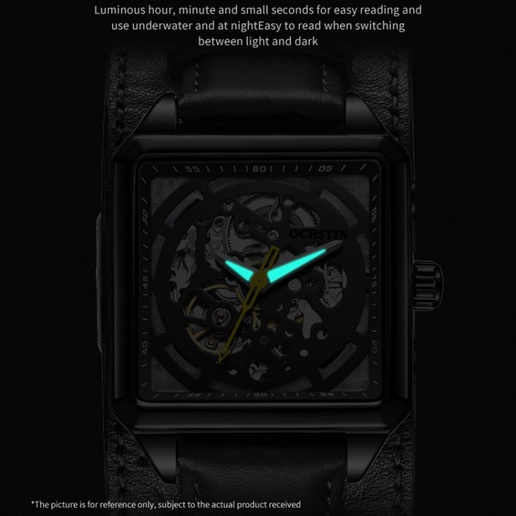 Ochstin 7237 Business Leather Wrist Wrist Waterproof Luminous Skeleton Mechanical Watch
