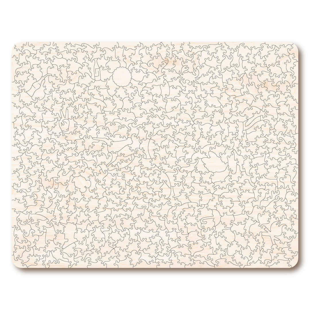 This puzzle was first cut by hand on a scroll saw by Mark Cappitella - it was then meticulously hand traced into our software to enable us to produce it in laser cut form - allowing you to enjoy a 'hand cut' puzzle from a master puzzle maker for a fraction of the price!