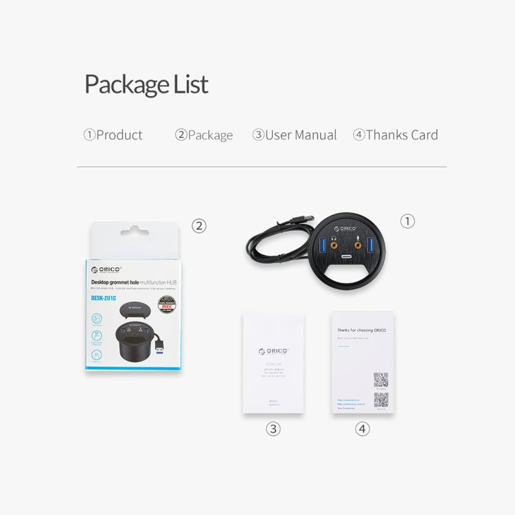 ORICO DESK-2U1C Desktop Power Grommet Multi-Function HUB