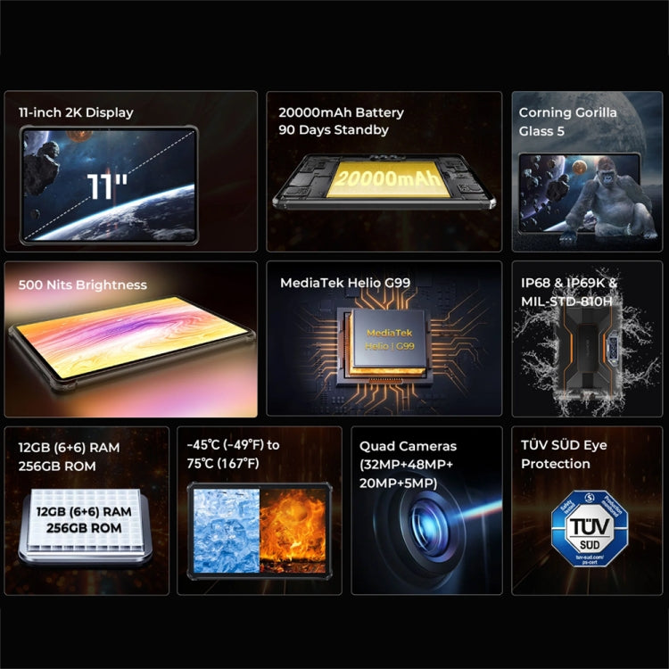 OUKITEL RT8 4G Network IP68/IP69K Rugged Tablet, 11 inch Android 13 MediaTek Helio G99 Quad Core Support Dual SIM, EU Plug