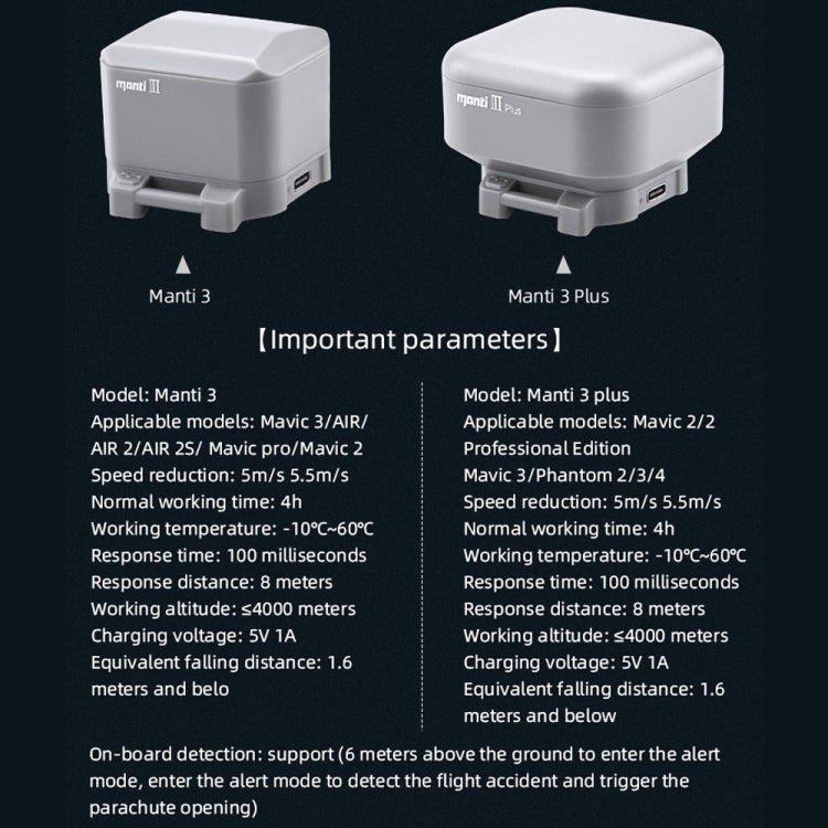 7. The umbrella cabin of Manti 3/Manti 3 Plus is for one-time use. After the parachute is opened, the umbrella cabin needs to be replaced before it can be used.