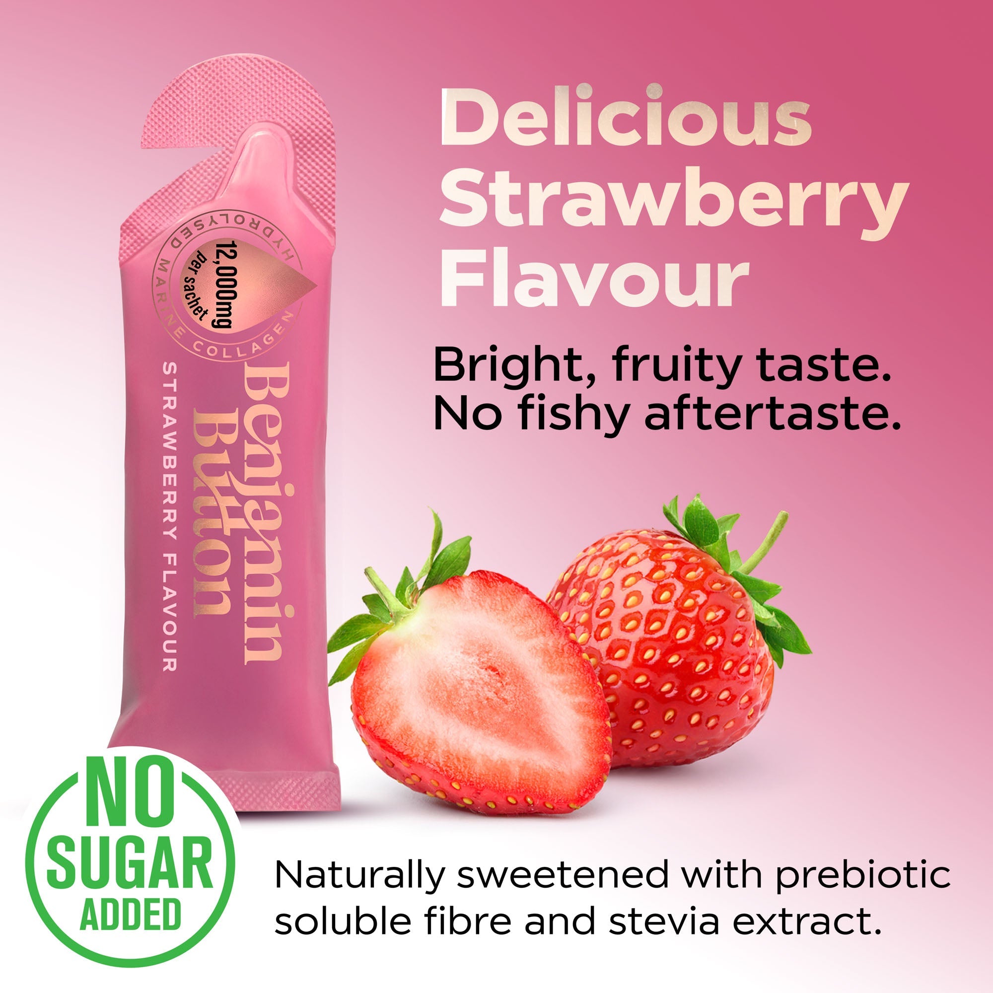 Perimenopause Collagen Strawberry Sachets – 14 Pack (2 Weeks Supply) – 12,000mg Marine Collagen with Chasteberry, Vitamins & Hyaluronic Acid