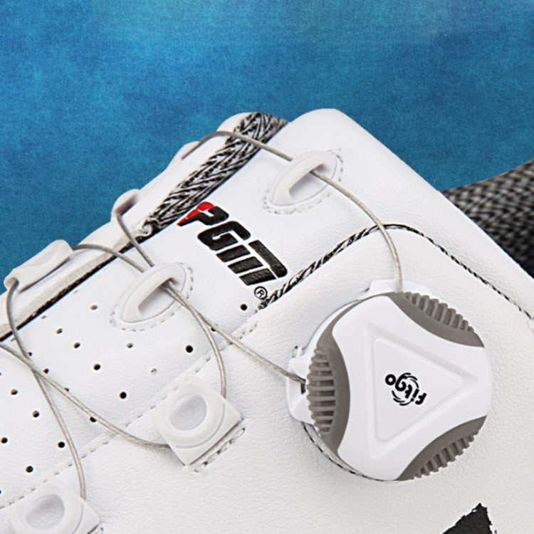 PGM Golf Rotating Buckle Waterproof Microfiber Leather Breathable Non-slip Sneakers for Men(Color:White Green Size:45)
