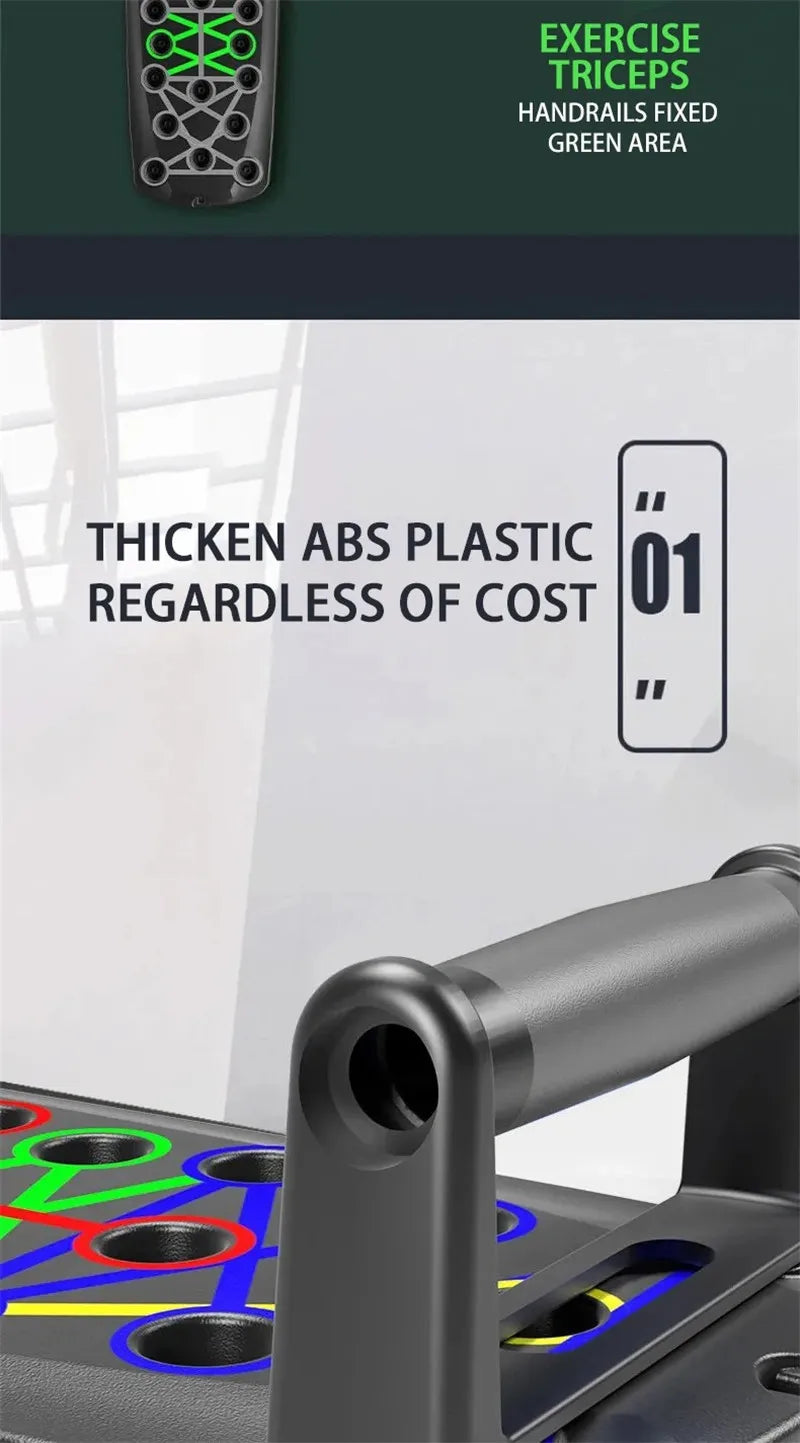 1. Different color-coded push plates focus on the muscles to be exercised.