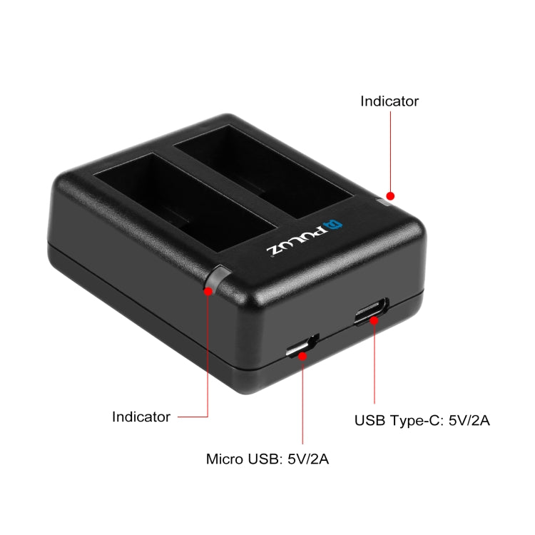 PULUZ USB Dual Batteries Charger for GoPro HERO12 Black /11 Black /10 Black /9 Black