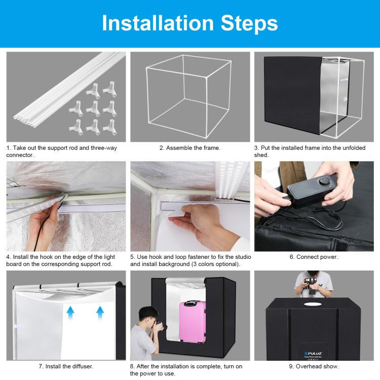 7. 4 PVC background boards, you can choose the background according to your needs. The background board is anti-wrinkle, waterproof and easy to clean;