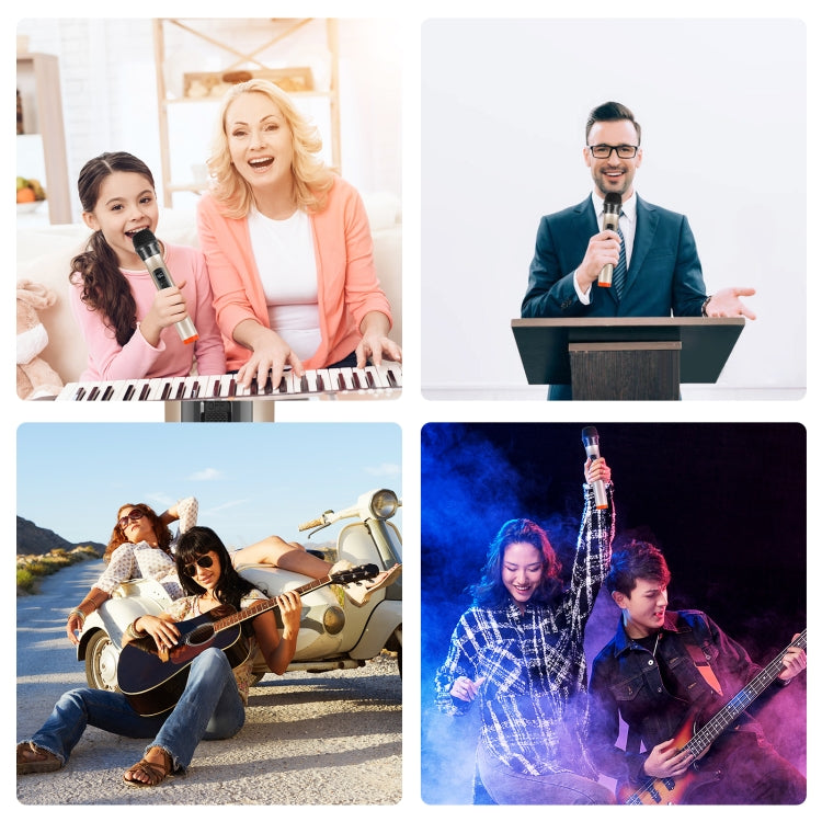 3. Plug and Play, cable-free, frequency automatic pairing, AA battery-powered handheld microphone, and 18650 lithium rechargeable battery powered receiver makes it portable (Note: The AA batteries and 18650 batteries are not included)