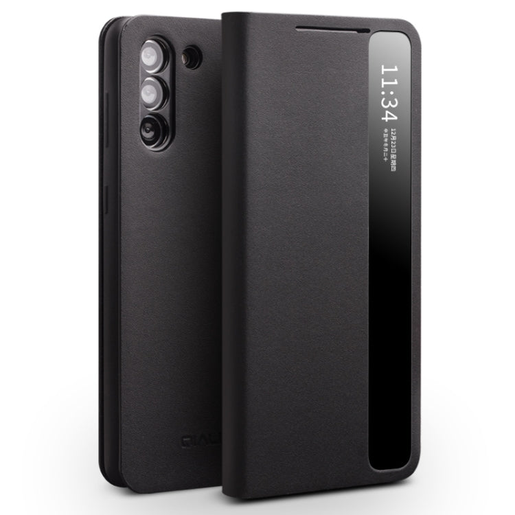 QIALINO Genuine Leather Side Window View Smart Phone Case, For Samsung Galaxy Note20 Ultra, For Samsung Galaxy S21 5G, For Samsung Galaxy S21+ 5G