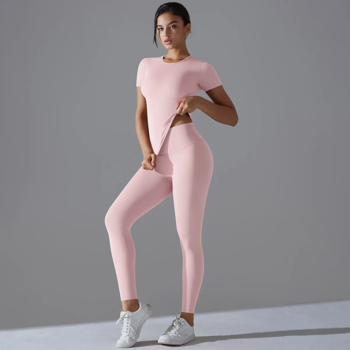 Quick-Drying Gym Leggings Set Yoga Suit Sports Set Sleeve Breathable Stretchy GYM Yoga Slim Fitness Active Top Tight Yoga Pant