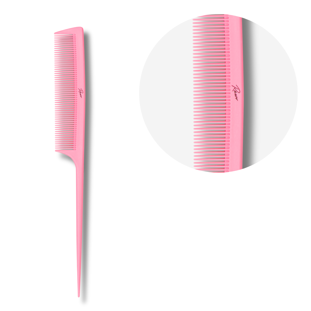 Styling comb with plastic tail. Key benefits: ideal for creating neat sections and partings when styling or colouring hair. Perfect for teasing hair when creating up-do styles. Can be used on wet or dry hair. Suitable for all hair types. Rawr recommends: use this comb for creating neat sections in your hair, simply glide the tail across the scalp, flip and comb your section before putting in your rollers.