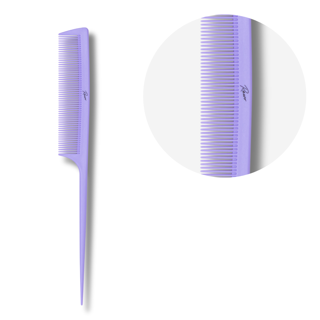 Styling comb with plastic tail. Key benefits: ideal for creating neat sections and partings when styling or colouring hair. Perfect for teasing hair when creating up-do styles. Can be used on wet or dry hair. Suitable for all hair types. Rawr recommends: use this comb for creating neat sections in your hair, simply glide the tail across the scalp, flip and comb your section before putting in your rollers.