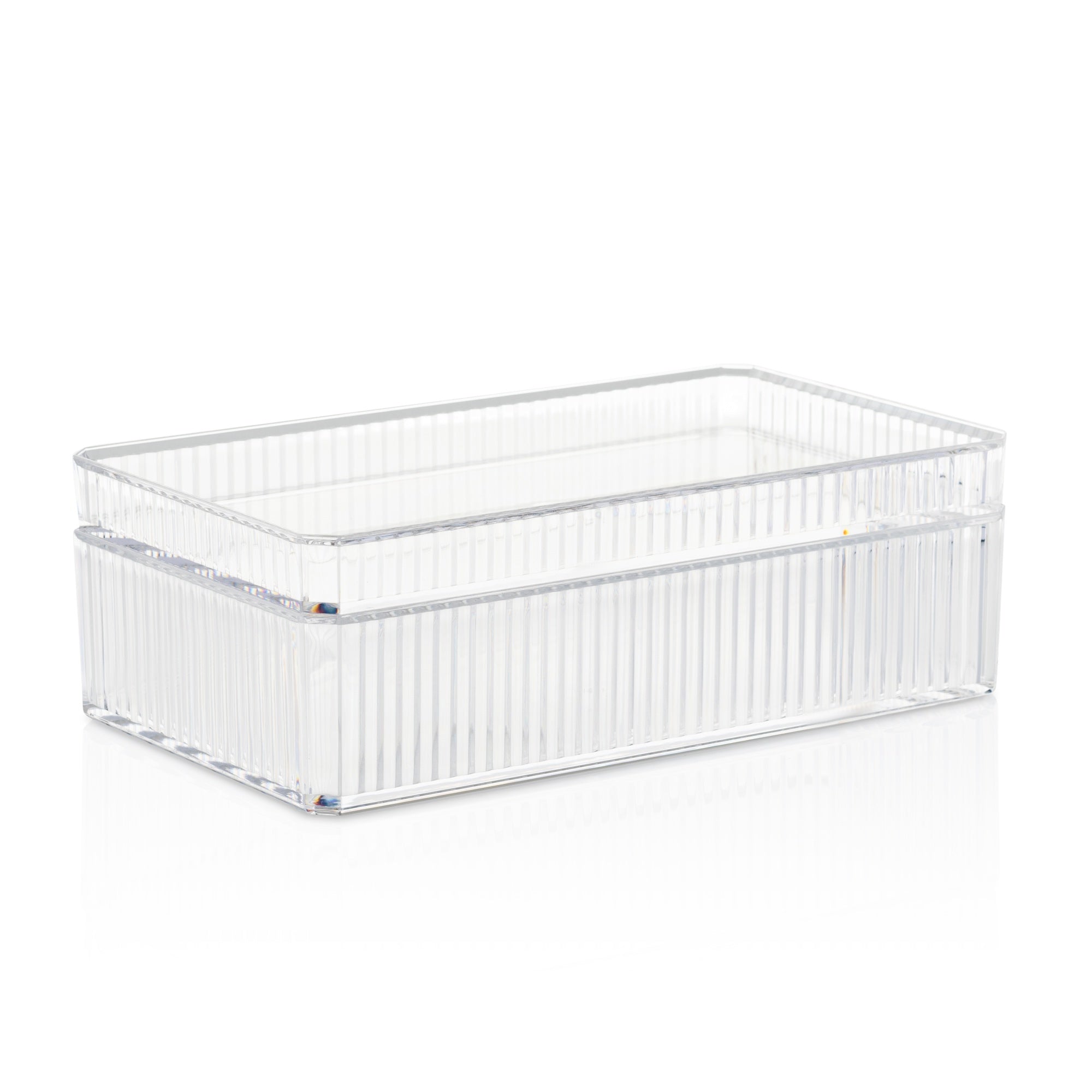 Clear storage box with lid. Can be multi-purchased and stacked. Size: medium 22x13x7.3cm made from 100% acrylic