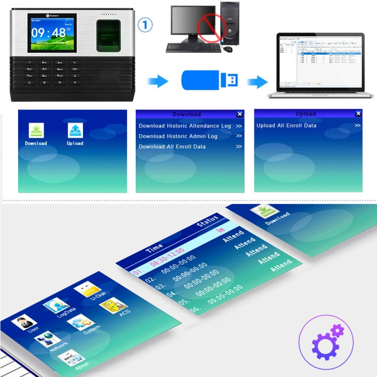 1. 2.8 inch color LCD screen 2. Fingerprint sensor resolution: 500DPI 3. Communication: TCP/IP, WiFi, USB memory disk 4. User:... Read more