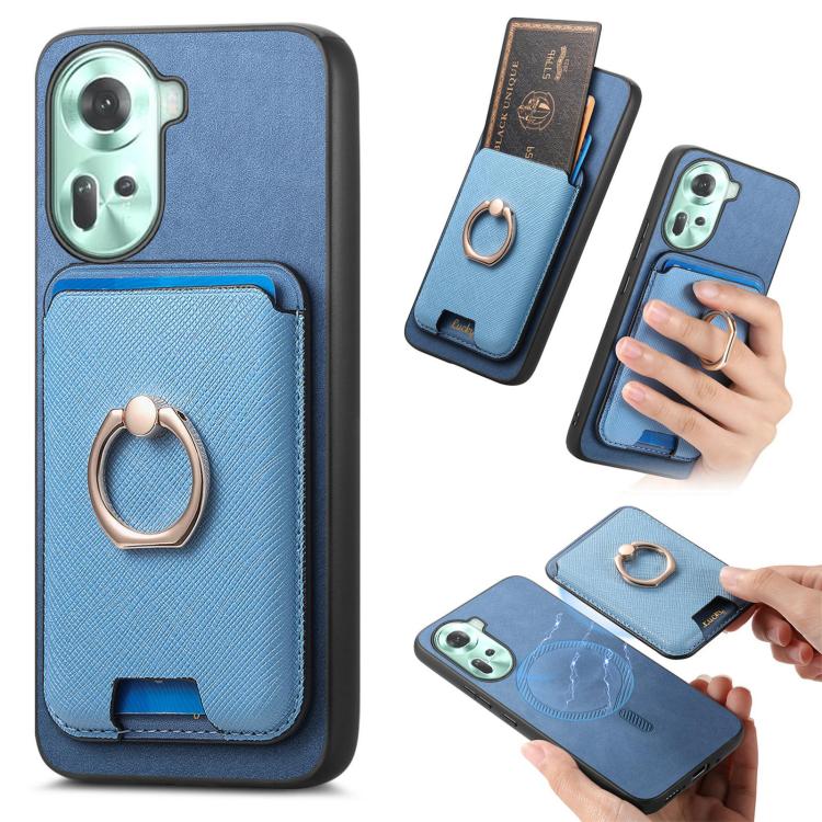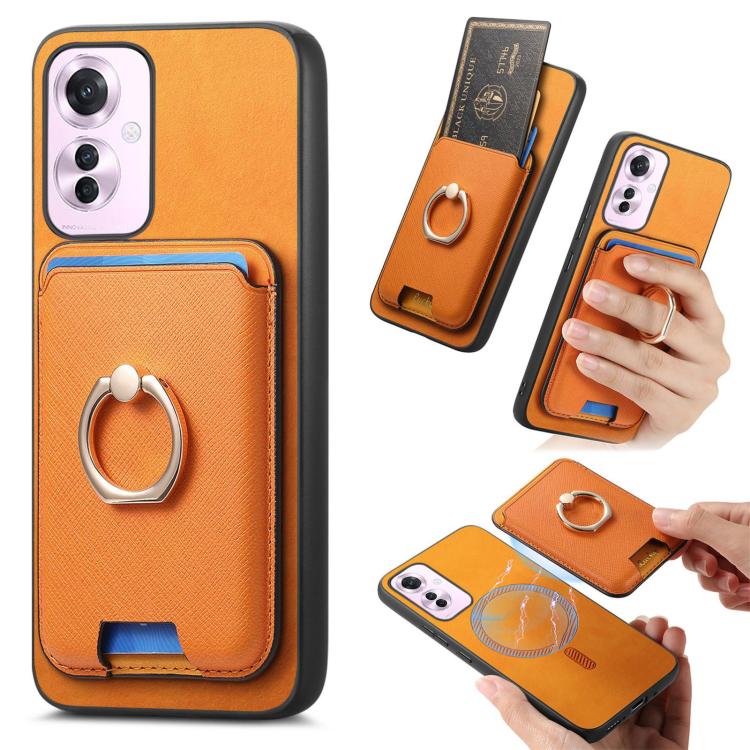 Retro Cross Leather Ring Vertical Insert Card Bag MagSafe Phone Case, For OPPO Reno11 F, For OPPO Reno11 Global, For OPPO Reno11 Pro Global