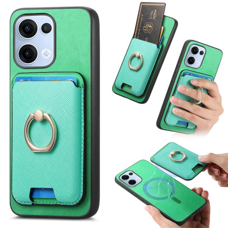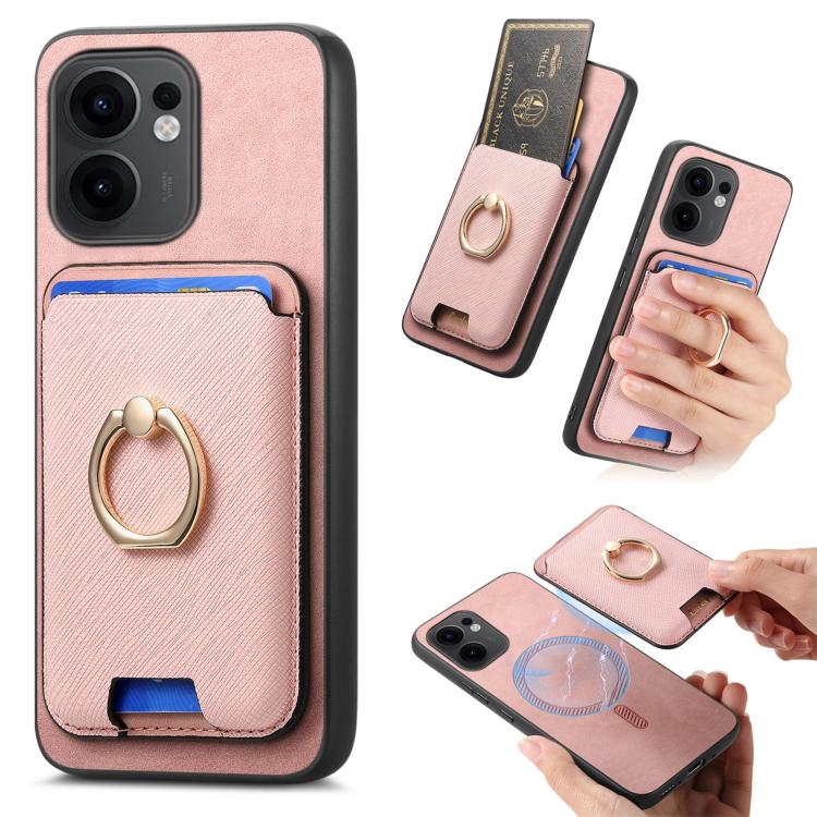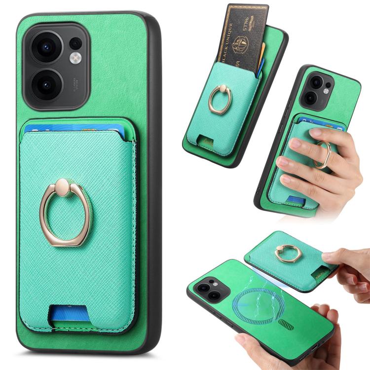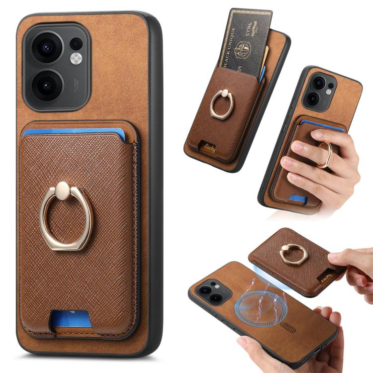Retro Cross Leather Ring Vertical Insert Card Bag MagSafe Phone Case, For OPPO Reno13 Pro Global, For OPPO Reno13 Global, For OPPO Reno13 F