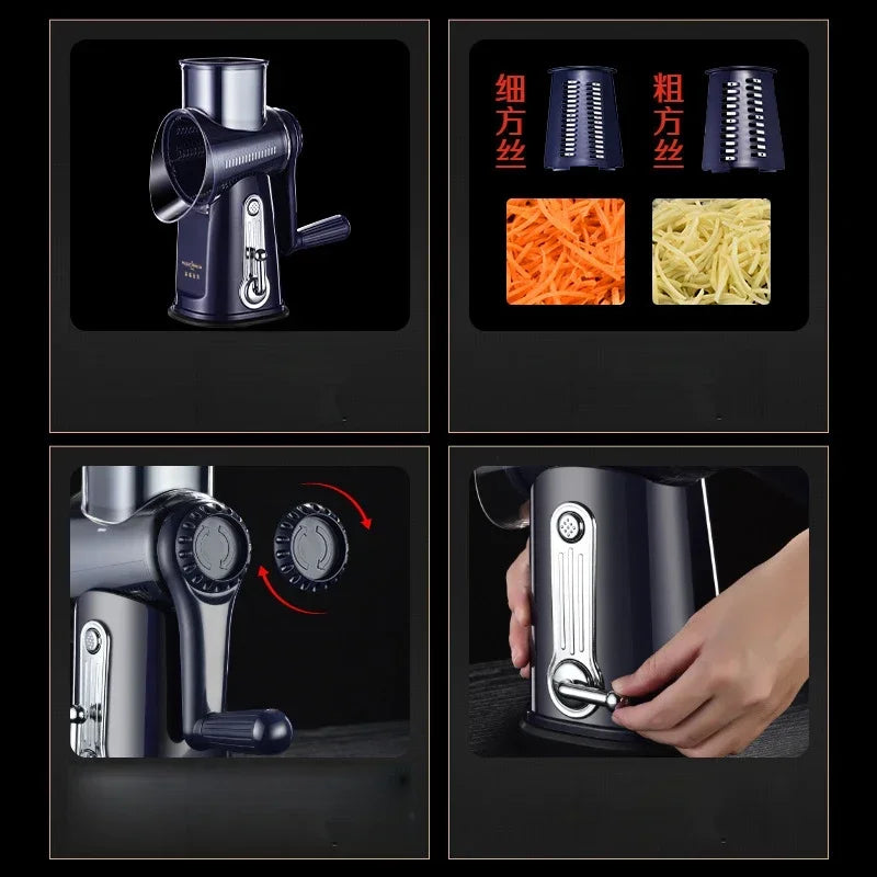 Rotary Cheese Grater Shredder Round Mandolin Slicer with Handle and 5 Drum Blades Kitchen Manual Vegetable Slicer Nuts Grinder