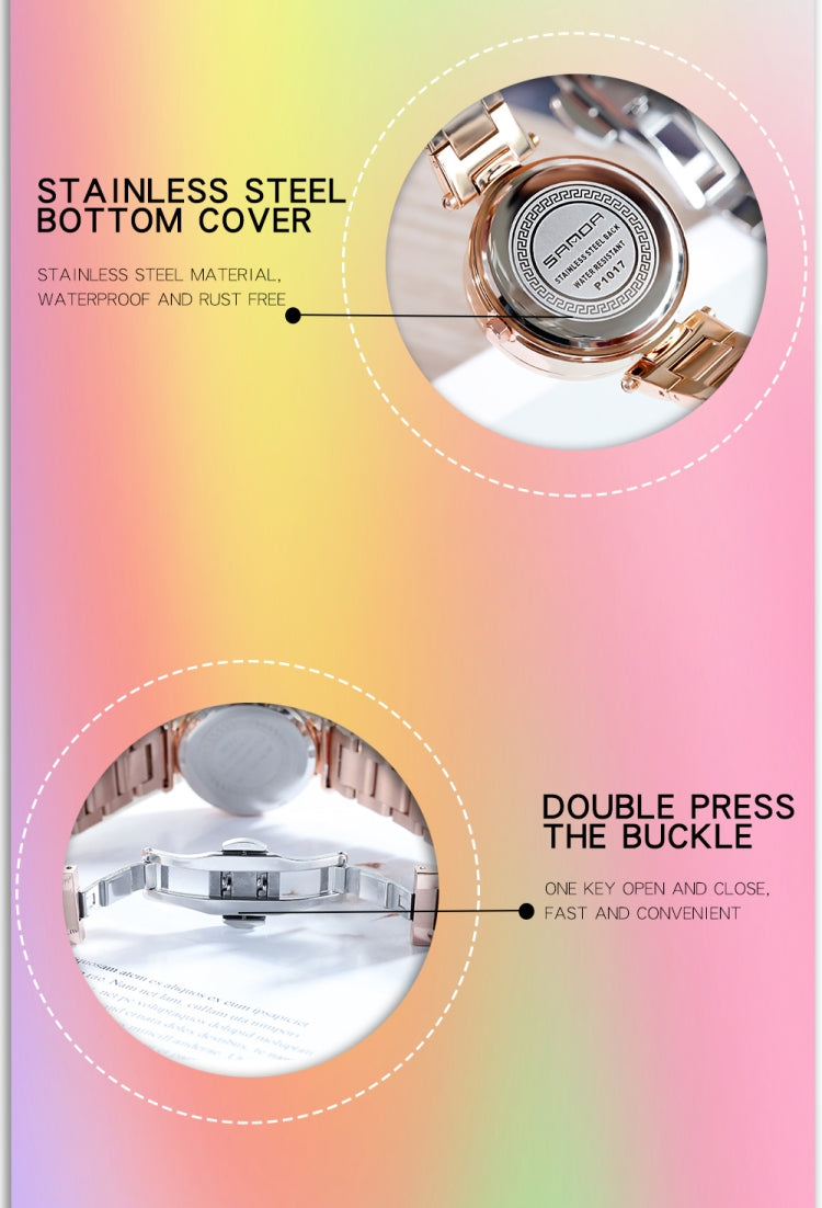 1. Brand: SANDA2. Model No. : 1017 Steel Strip 3. Display type: Pointer 4. Population: Women 5. Style: Fashion Casual... Read more