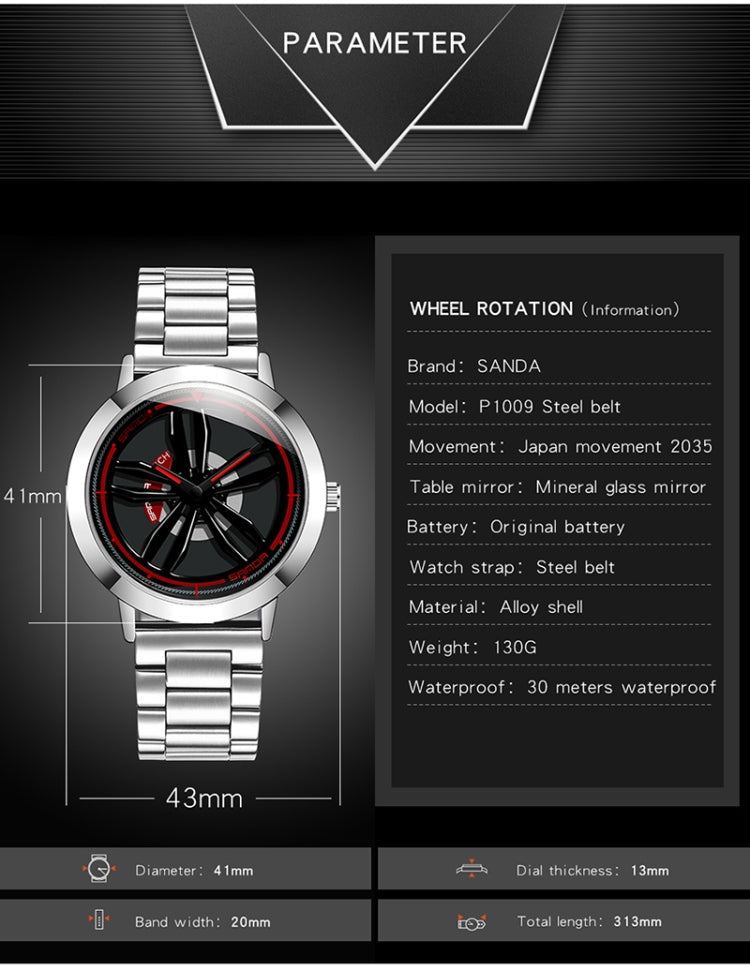 1. Brand: SANDA2. Model No: 1009 Steel Strip 3. Display type: Pointer 4. Crowd: Male 5. Style: Sports 6. Waterproof:... Read more