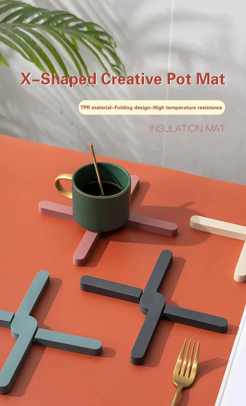 Silicone Heat Resistant Pad Foldable Non-Slip Pot Pan Mat Table Placemat Dish Plate Cross Holder Coaster Kitchen Table Trivet