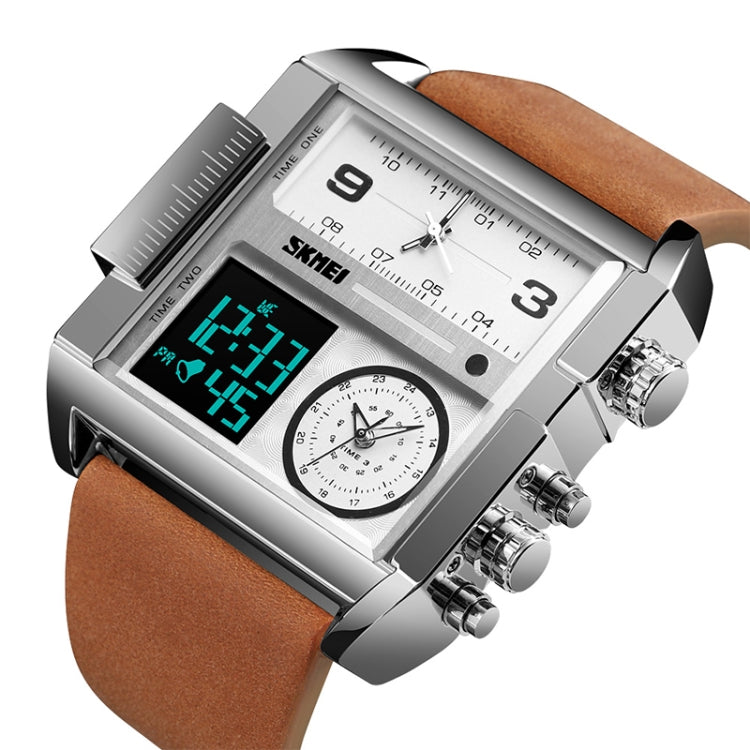 SKMEI 1391 Multifunctional Men Business Digital Watch 30m Waterproof Square Dial Wrist Watch with Leather Watchband