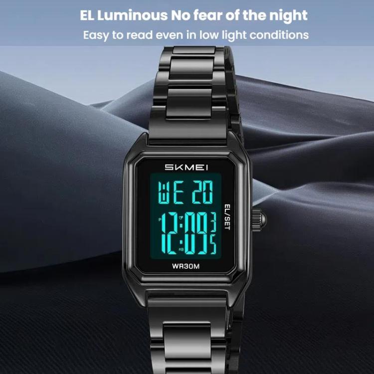 7. Functions: time, stopwatch, EL luminous, date display, alarm, week display, hourly time, 12/24 hour system, countdown
