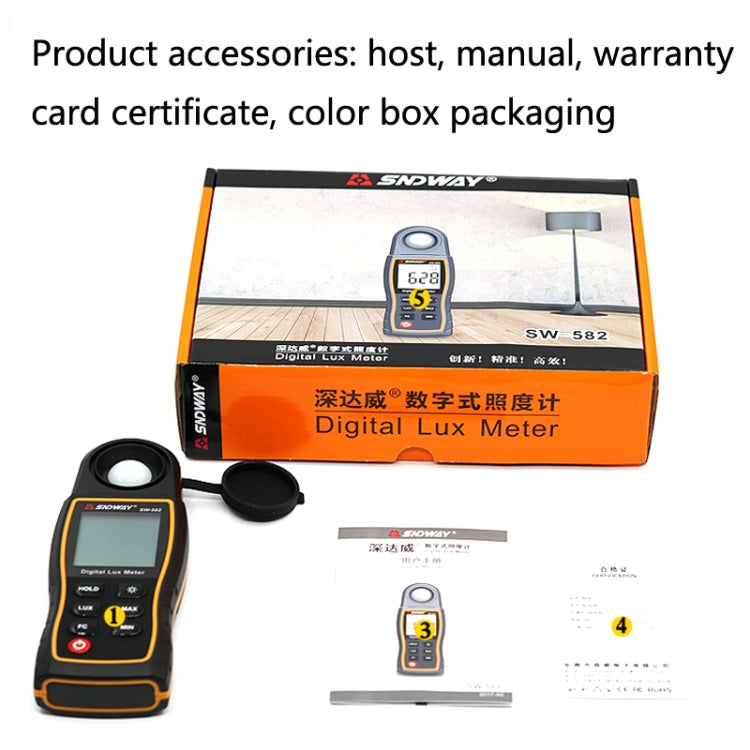 SNDWAY SW582 Handheld Digital Illuminance Meter High-Precision Digital Light Meter