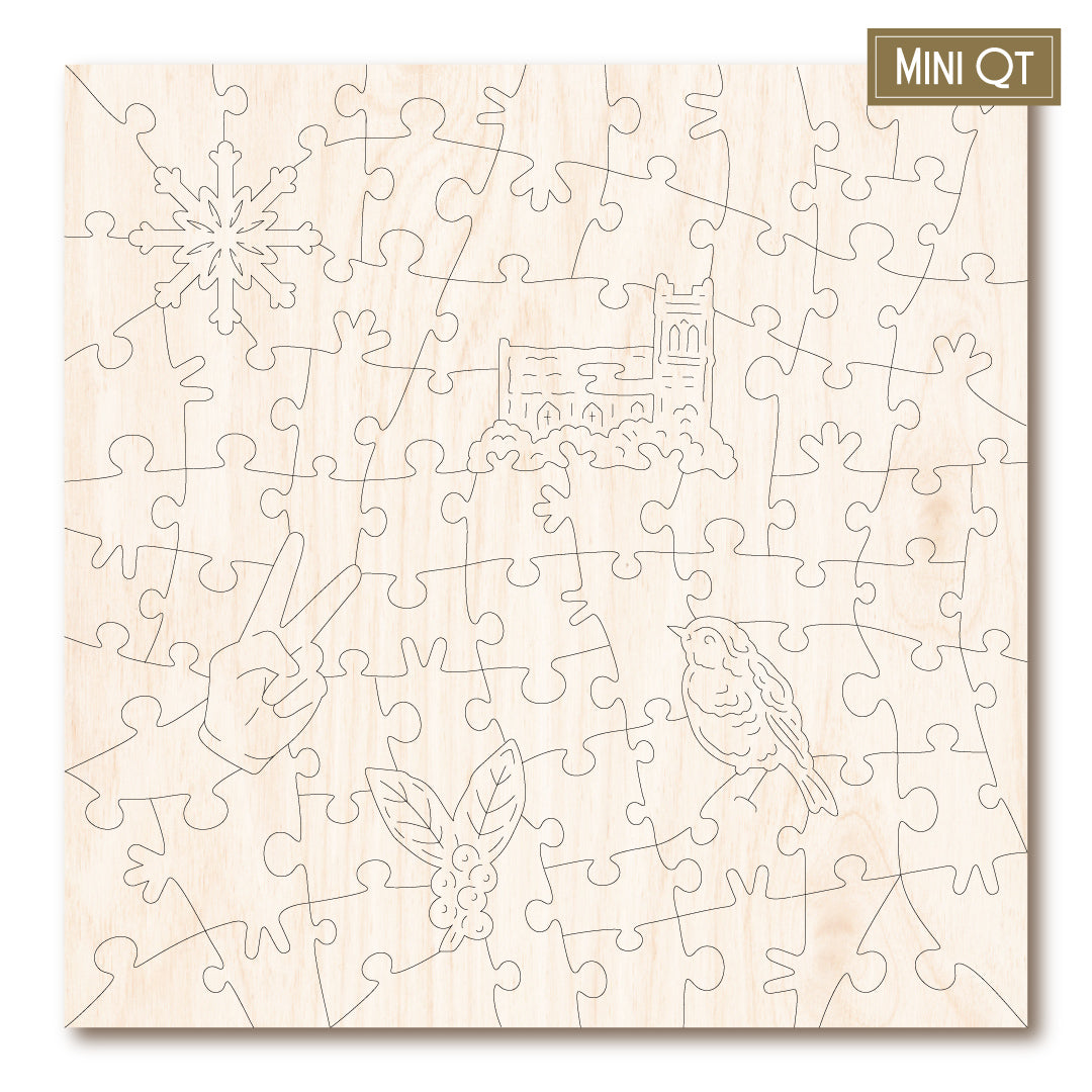 Our MINI QT puzzles are laser cut from thick, 4mm plywood and include 5 whimsies - they make a great puzzle snack!