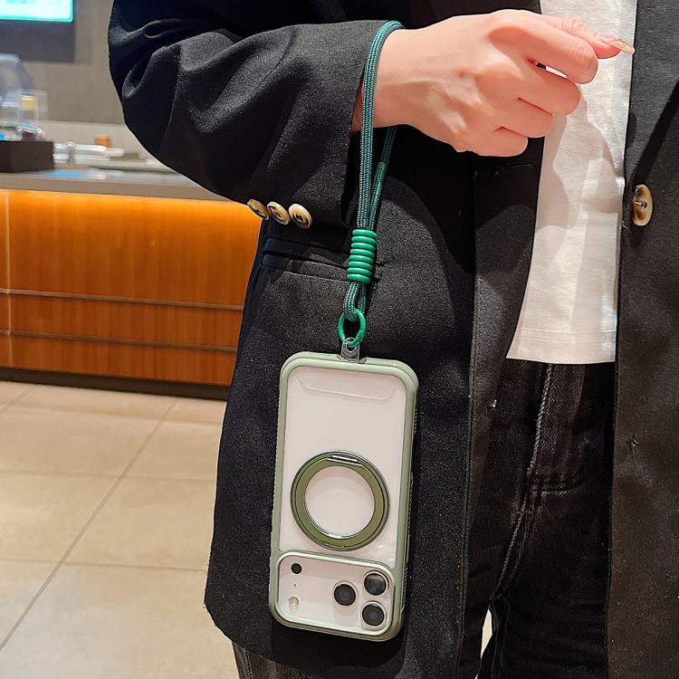 Solid Color Edge Transparency Rotation Holder MagSafe Phone Case with Wrist Strap