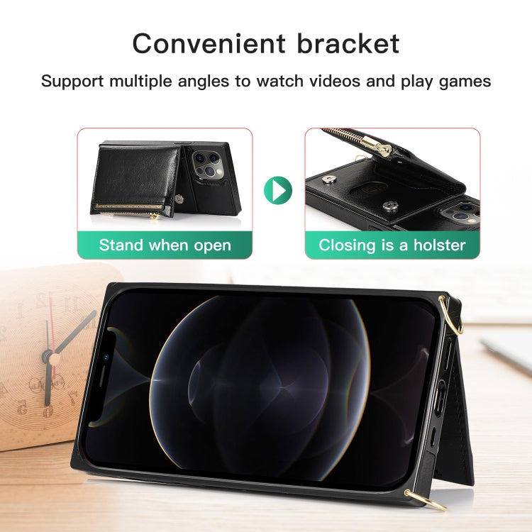 Square Zipper Wallet Bag TPU+PU Back Cover Case with Holder & Card Slots & Wallet & Cross-body Strap, For iPhone 12 Pro Max, For iPhone XS / X, For iPhone XS Max