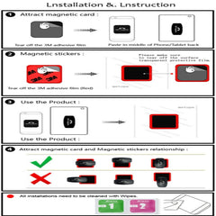 1. Attract the magnetic card: Remove the film and stick it in the middle of the back of the phone/tablet.