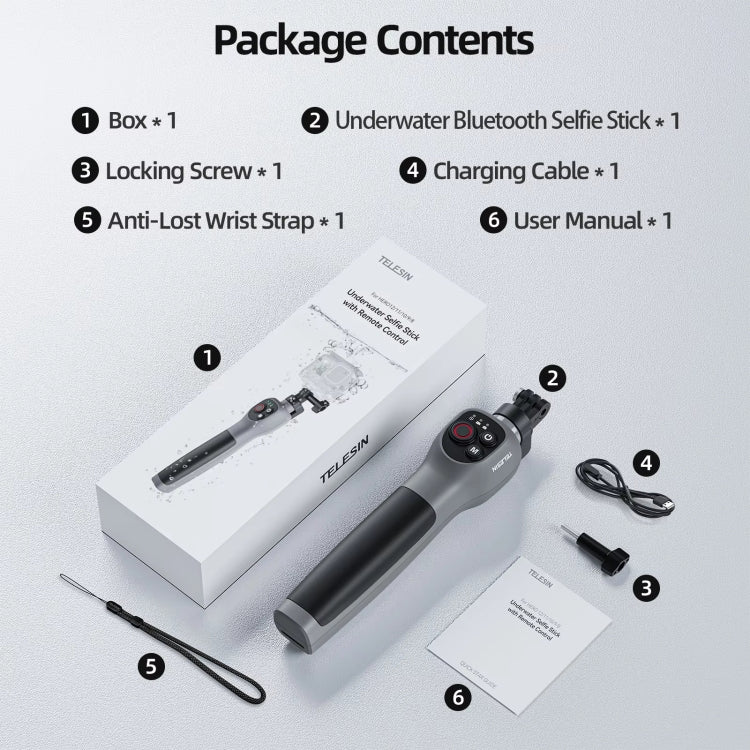 TELESIN 0.85m Underwater Selfie Stick Wireless Remote Control For GoPro HERO12 Black / HERO11 Black / HERO10 Black / HERO9 Black / HERO8 Black, Selfie Stick