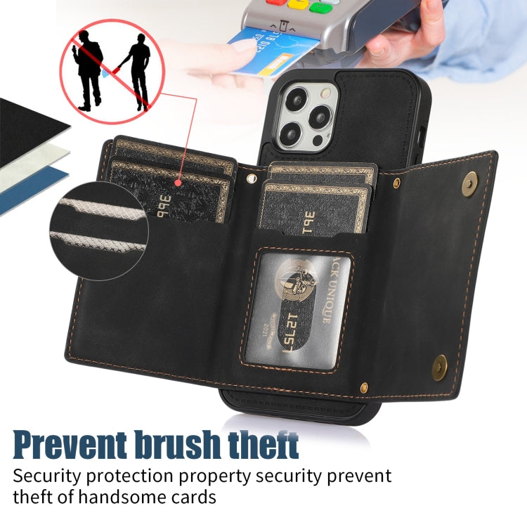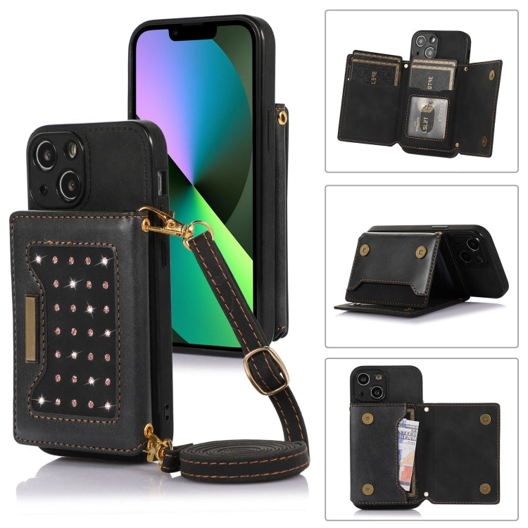Three-fold RFID Leather Phone Case with Lanyard, For iPhone 12 Pro Max, For iPhone 13, For iPhone 13 Mini, For iPhone 13 Pro