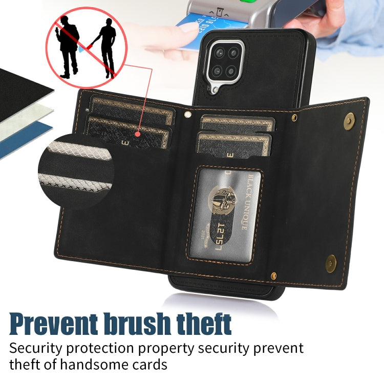 Three-fold RFID Leather Phone Case with Lanyard, For Samsung Galaxy A12, For Samsung Galaxy A13 4G/A13 5G, For Samsung Galaxy A51 4G, For Samsung Galaxy A53 5G, For Samsung Galaxy A52 5G/A52s 5G