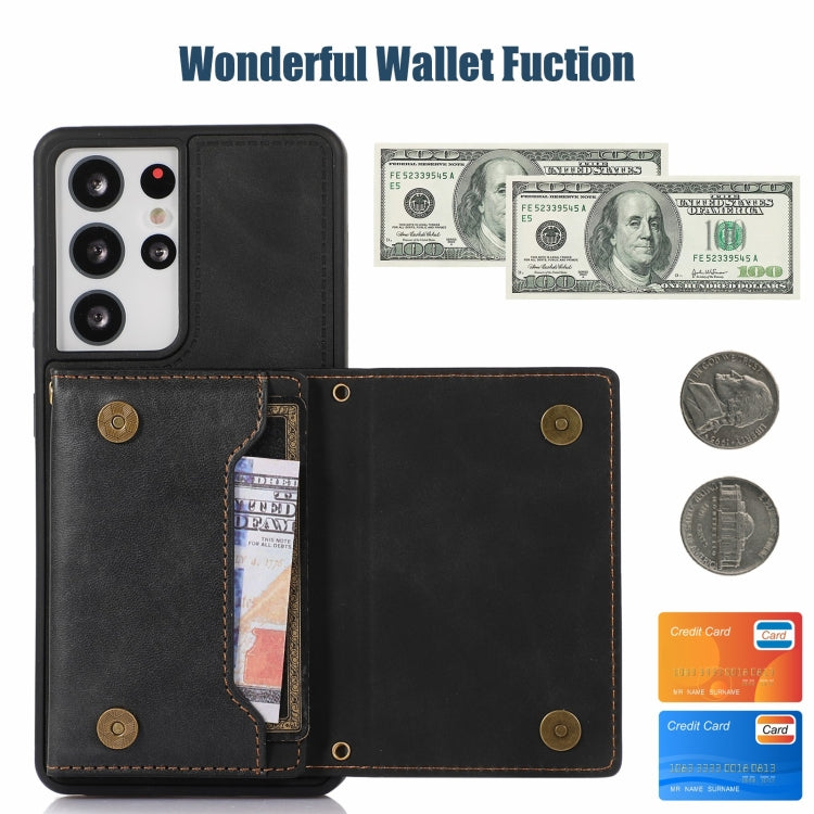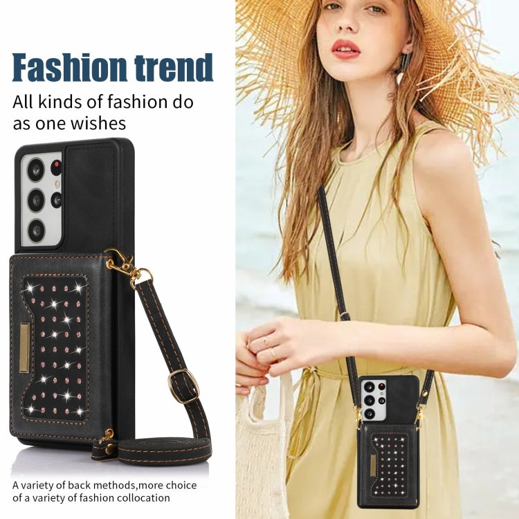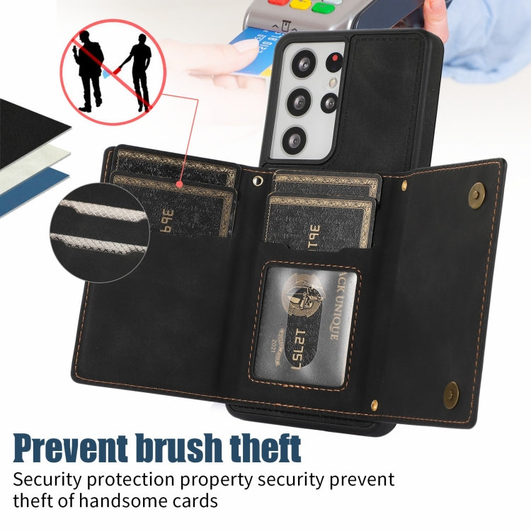 Three-fold RFID Leather Phone Case with Lanyard, For Samsung Galaxy S21 Ultra, For Samsung Galaxy S22+, For Samsung Galaxy S21+, For Samsung Galaxy S21 FE