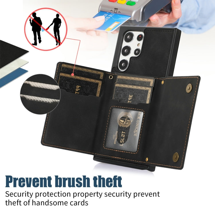 Three-fold RFID Leather Phone Case with Lanyard, For Samsung Galaxy S22 Ultra, For iPhone 12 Pro