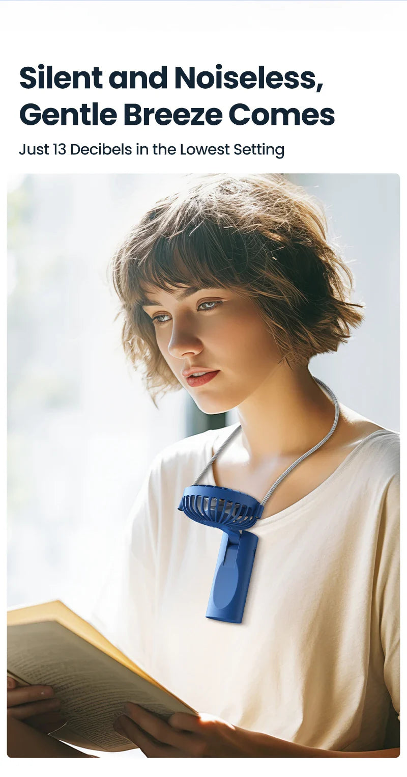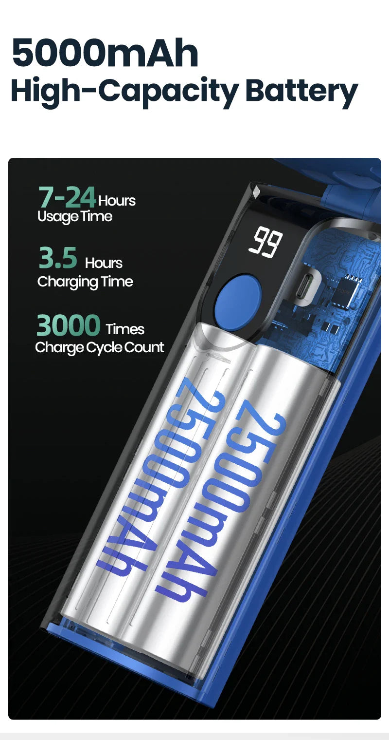 TOPK Portable Hand Held Fan,5000mAh 2-IN-1 Neck HandHeld Fan 180° Foldable Whisper-Quiet Brushless Motor Comes with Hanging Rope