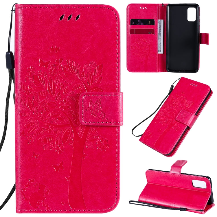 Tree & Cat Embossed Pattern Horizontal Flip Leather Case with Holder & Card Slots & Wallet & Lanyard, For Samsung Galaxy A41, For Samsung Galaxy A51 5G