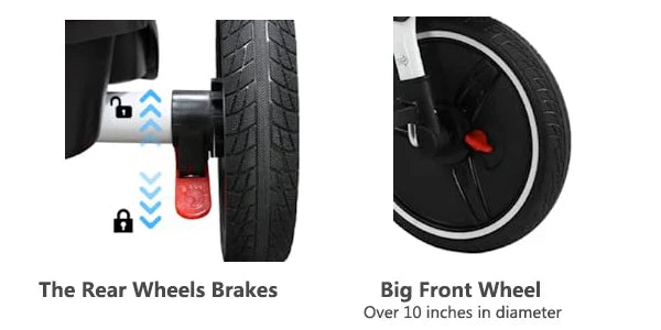 Rear Wheels Brakes.For safety purpose, 2 stroller brakes were designed on the back wheels for double safety.