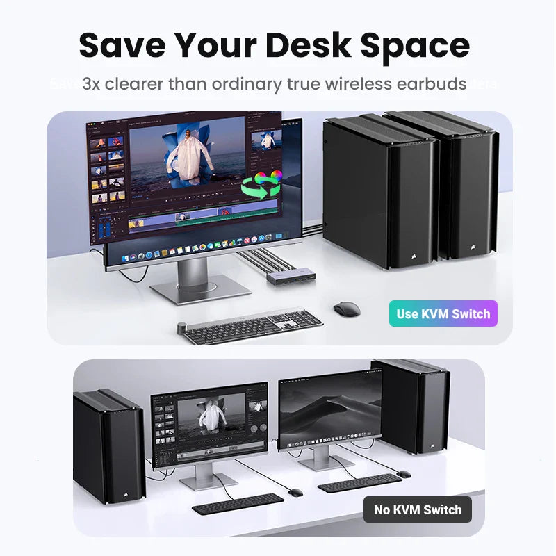 UGREEN 8K 60Hz HDMI KVM Switch USB C USB3.0 KVM Switcher 2 PCs Sharing 1 Monitor,Printer,Keyboard,Mouse Support 3D ,HDR Vision