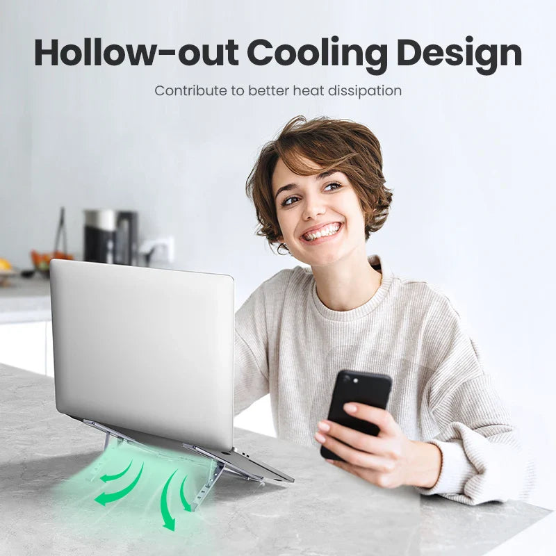 UGREEN aluminium laptop stand has 5 levels, perfect for holding laptops and large tablets such as iPad Pro. Provides you with the most ergonomic typing position as well as the best camera position for video conferencing.