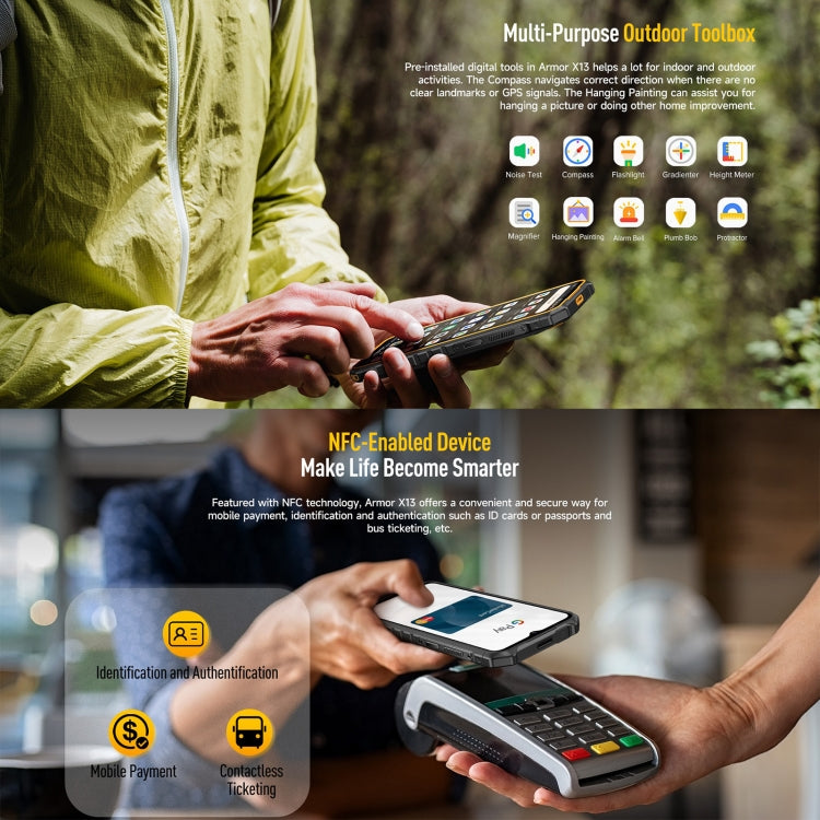 7. Ruggedness: IP68/IP69K/MIL-STD-810H, water depth of 1.5 meters up to 30 minutes; drop up to 1.5 meters tall