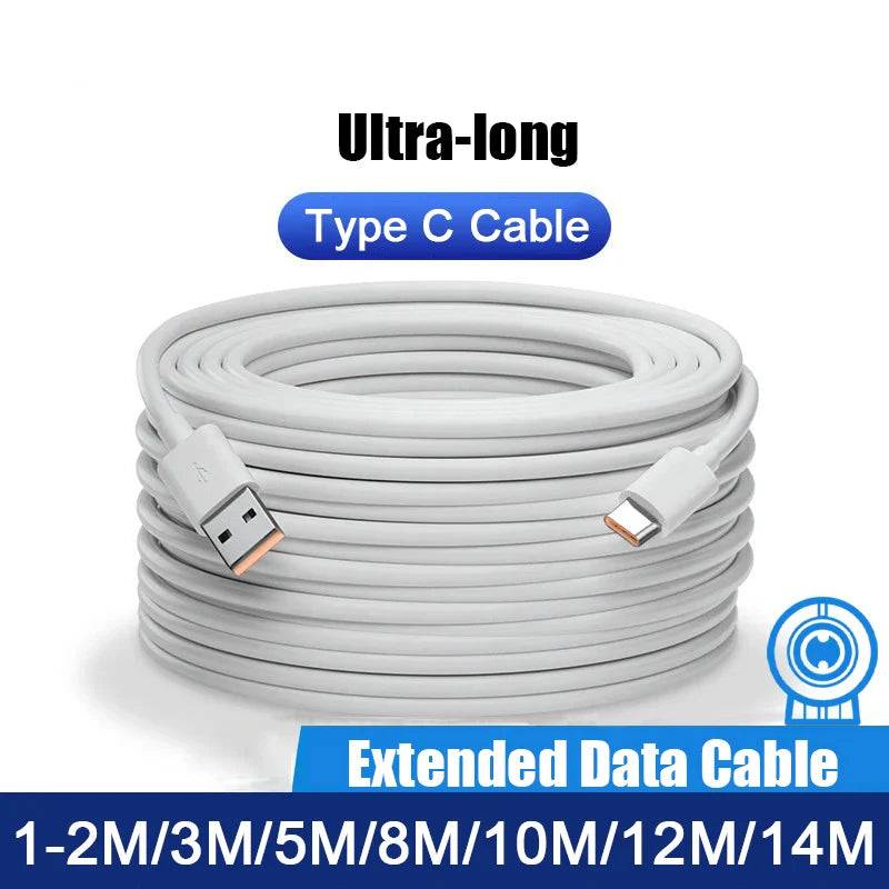 Ultra Long USB To Type C Cable For Xiaomi Redmi Huawei Mobile Phones Charging Cable Equipment VR Camera 2M 3M 5M 8M 10M 12M 14M