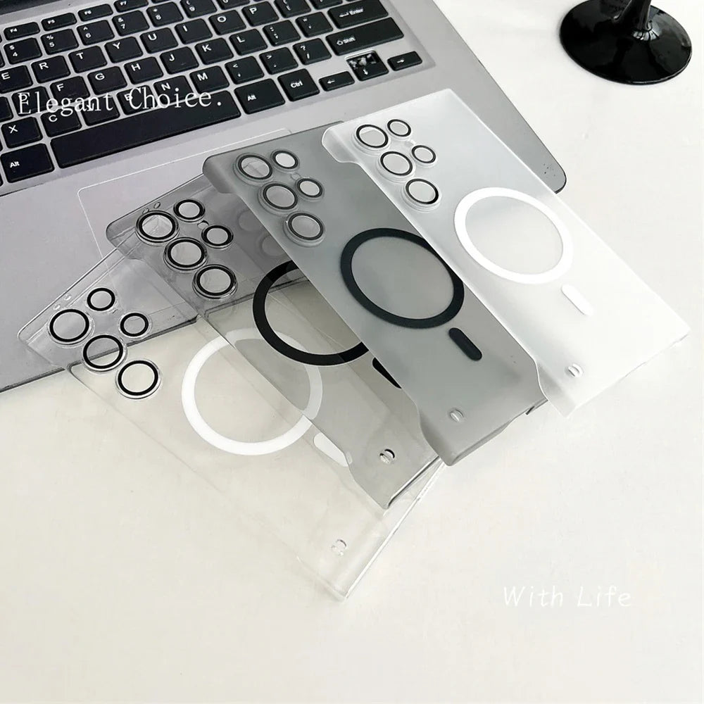 Ultra delgado para Magsafe Clear Frameless funda de teléfono para Samsung S24 Plus S22 S23 Ultra magnético carga inalámbrica cubierta sin bordes