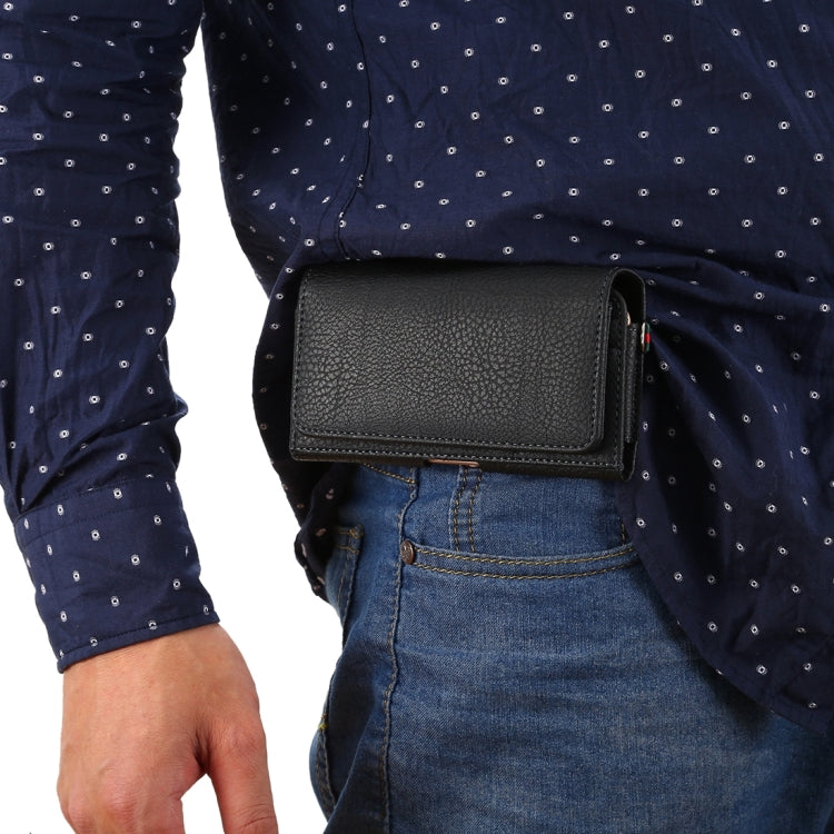Universal Litchi Texture Vertical Flip Thwartwise PU Leather Case / Waist Bag with Back Splint & Card Slots & 15cm Lanyard for iPhone 8 & 7 & 6s & 6, Galaxy SIV & SIII, Xiaomi Redmi 3 & 3X, Size: 14.3 x 7.5 x 1.5 cm