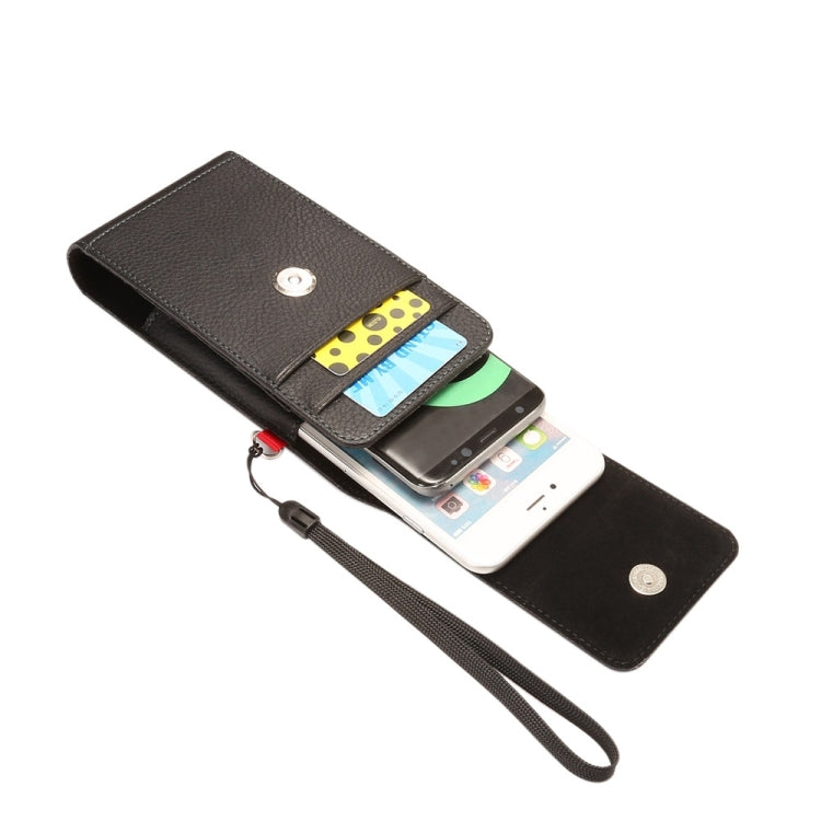 Universal Litchi Texture Vertical Flip Upright Lattice PU Leather Case / Waist Bag with Back Splint & Card Slots & Lanyard for iPhone 8 Plus & 7 Plus , Galaxy Note 8 / S8 Plus / S9+, Huawei Mate 8, For 6.0 inch and Below Phones