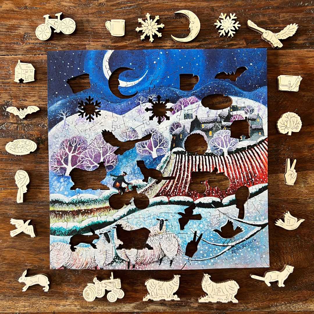 This delightful 242 piece puzzle contains ~20 themed whimsy pieces. Unique connectors including our signature 'V' knobs will enhance your puzzling experience!