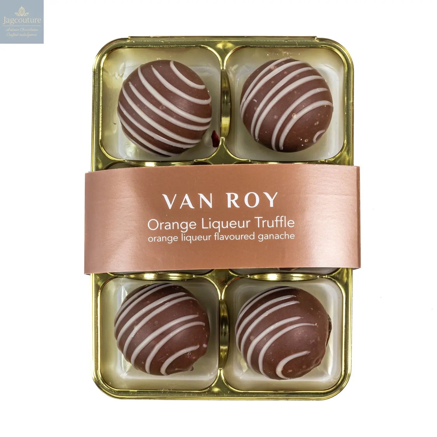 Van Roy 6 pack of orange liqueur truffles in cello - Outer: 12UTC1UTCSat, 06 Jan 1900 00:00:00 +0000amSaturday