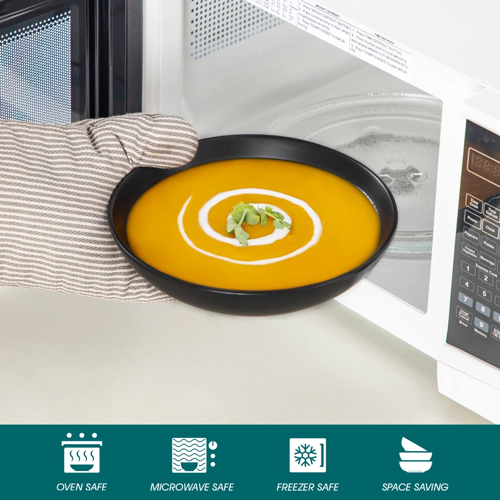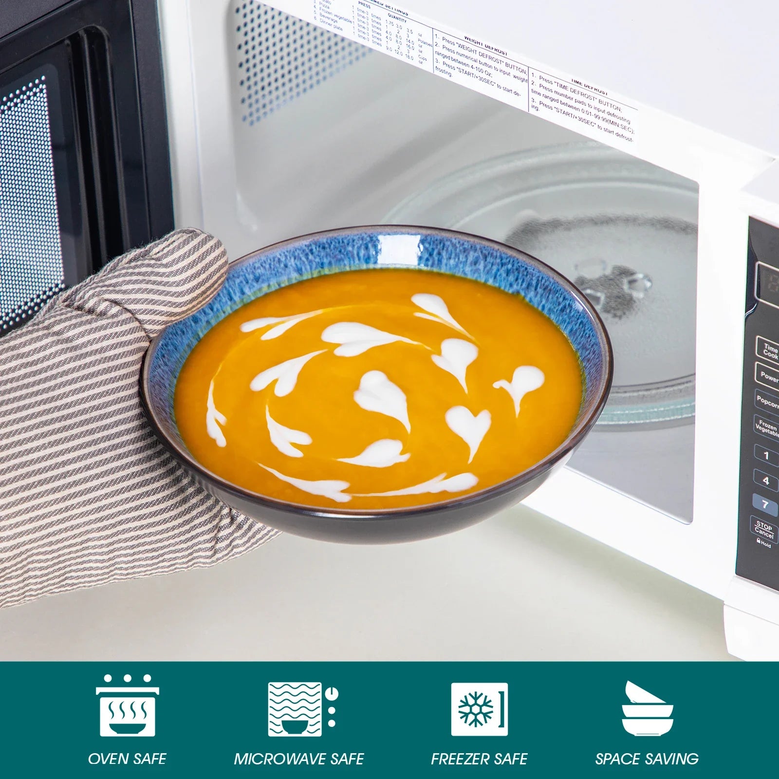 vancasso 18/24PCS Black Ceramic Plate Sets Mediterranean Blue Stoneware Dinner Set with 6PCS Dinner Plate/Dessert/Bowl/Soup
